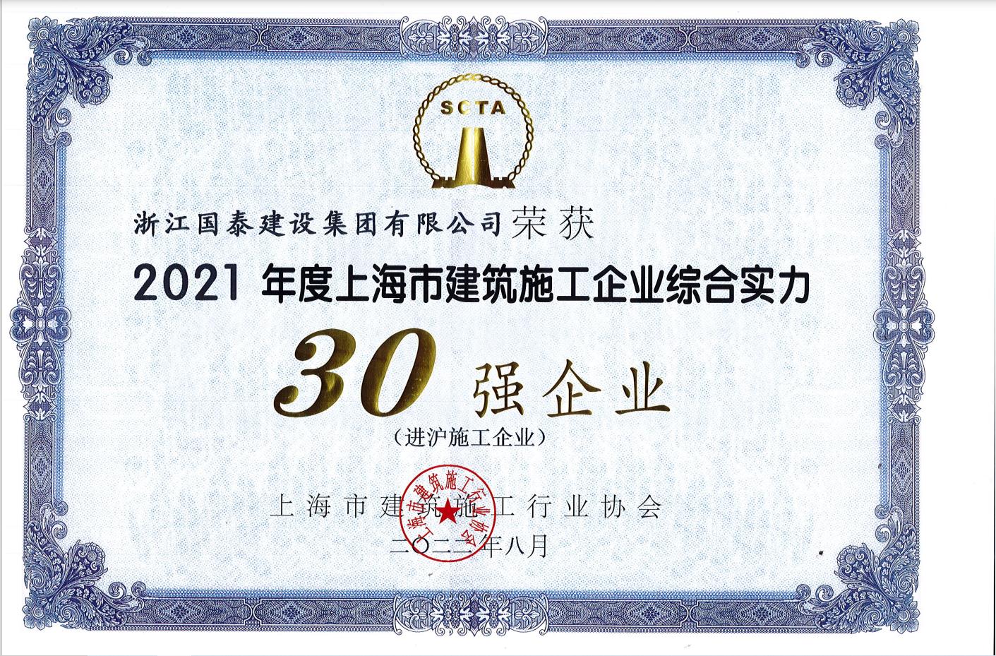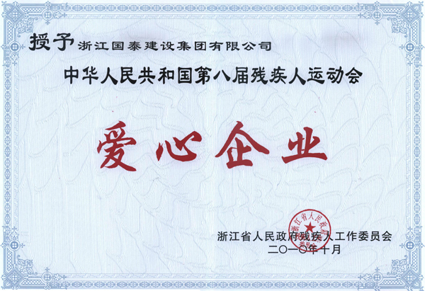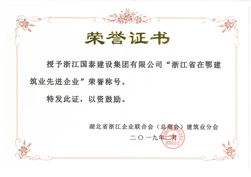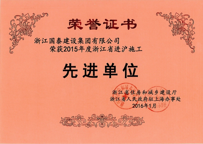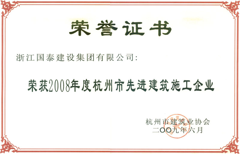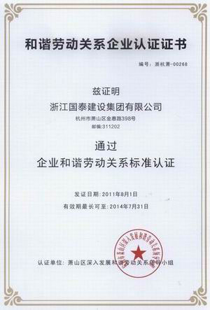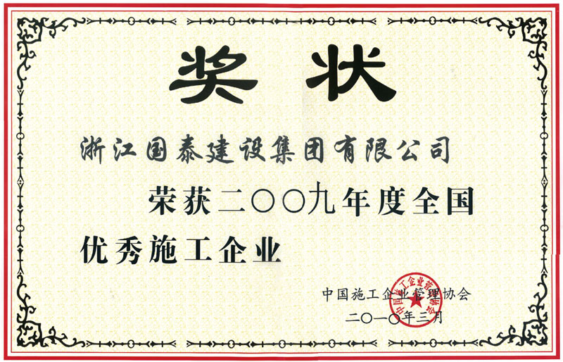 浙江省百强民营企业,浙江省建筑重点骨干企业,浙江省先进建筑施工企业,浙江省用户满意施工企业,浙江省首批诚信企业,杭州市百强企国泰产业、建设银行"AAA" 级信用企业,连续十八年被评为上海市外省市进沪施工企业工程质量、施工安全、经营行为、队伍管理、文明施工和科技进步等实绩综合考评优秀企业。