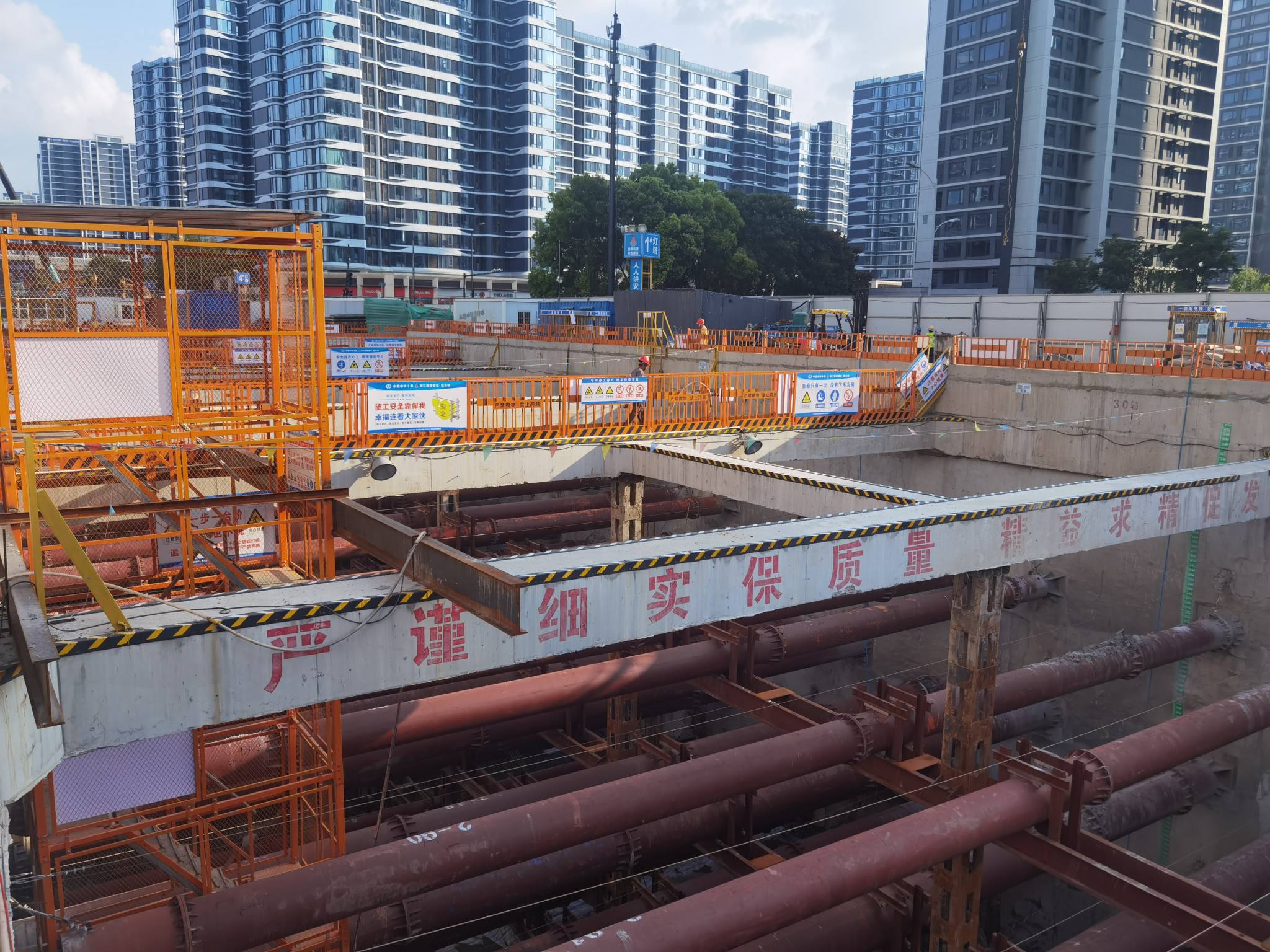 在抓进度的同时,安全管理毫不松懈。项目部运用智能巡检、无人机巡查等科技手段加强安全检查,同时开展防中暑、消防、防汛抗台等应急演练,确保施工安全。