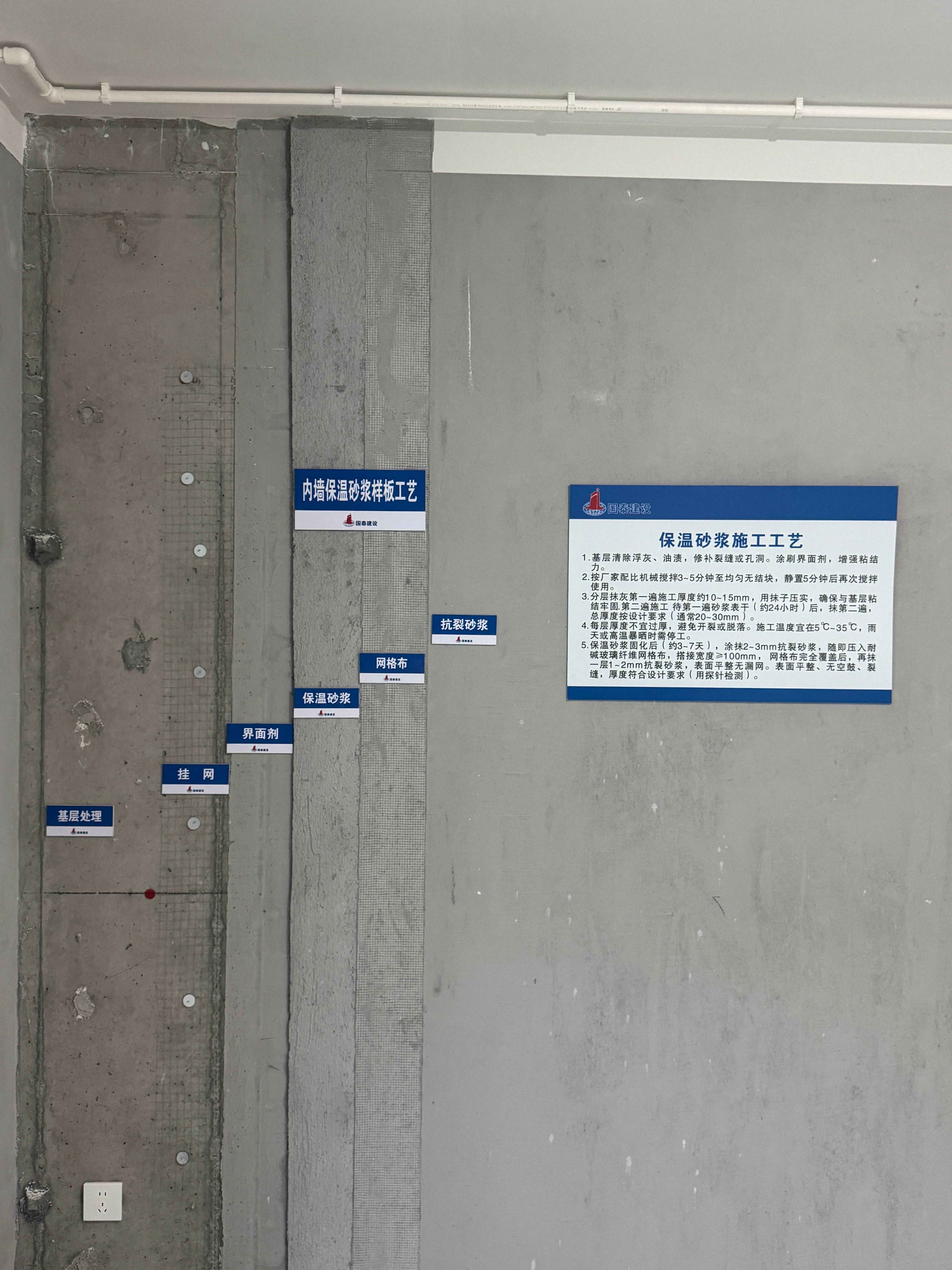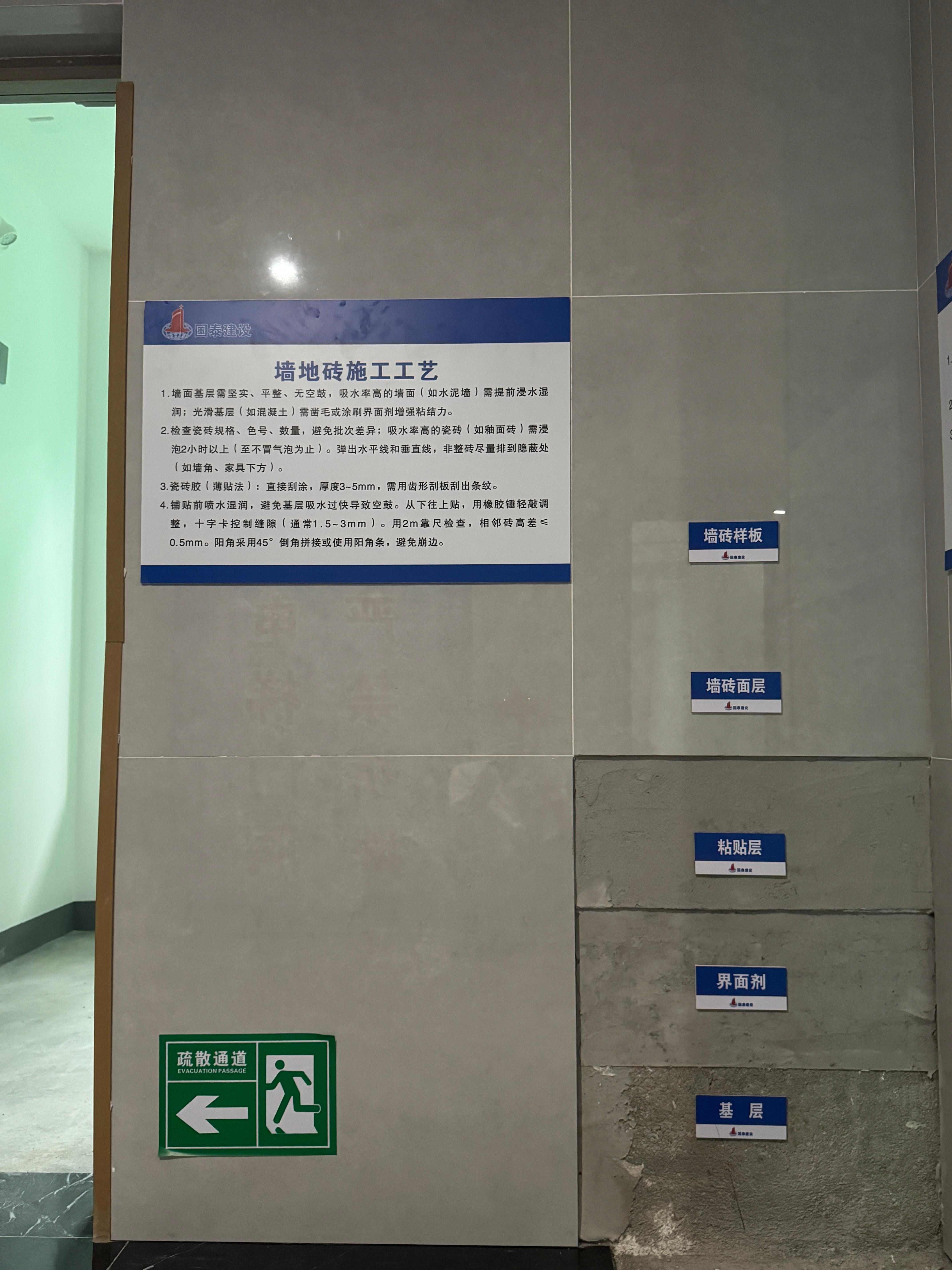5、工艺、实体样板 “可视化”:精心打造砌体、抹灰、水电安装等施工全过程样板墙 / 间。每一块砖的灰缝厚度、每一根管线的排布走向、每一处接头的处理方式都清晰标注,成为看得见、摸得着的 “实物教科书”。施工人员可直观学习标准施工工艺,管理人员也能以此为参照进行质量检查,确保施工全过程有章可循、有据可依,从源头上提升工程质量。