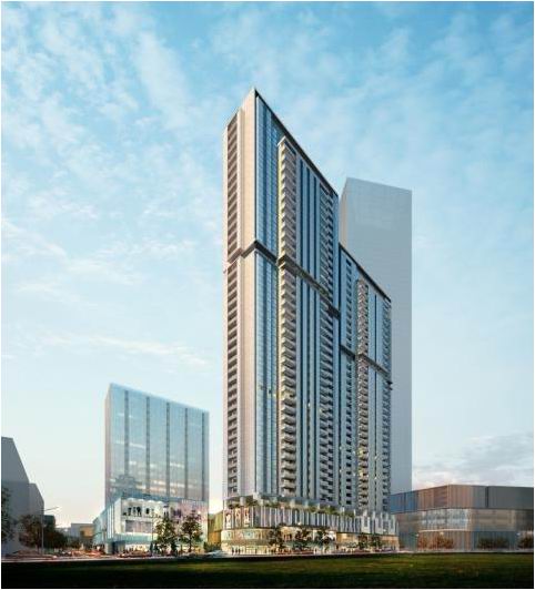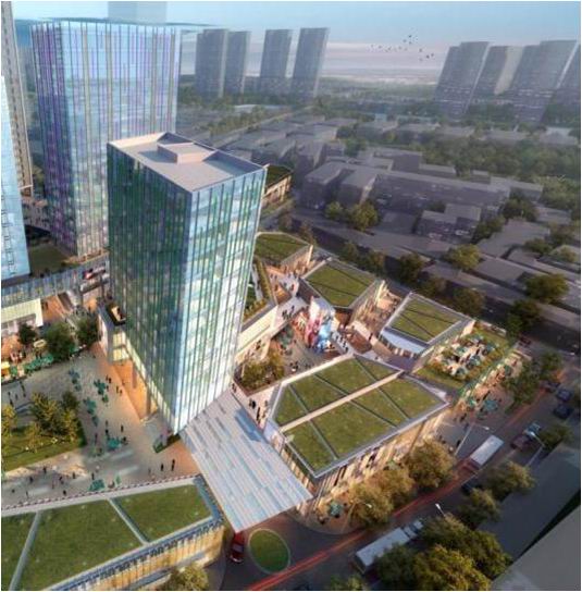 主要建筑物为1栋超高层甲级办公楼,高度258.4m,楼层54层,单层建筑面积2000㎡。其裙房为商业卖场,裙房高度为5-7层最高约为39m,单层建筑面积约为14000㎡